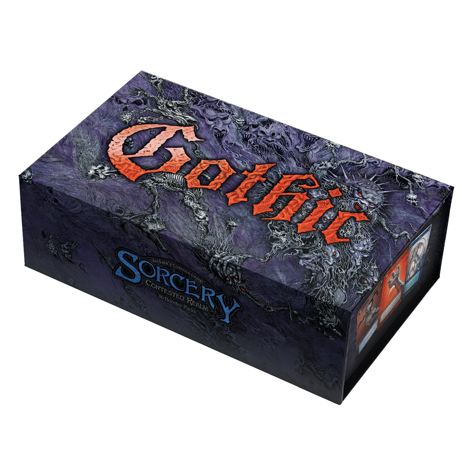 Enter Gothic, the largest set for Sorcery: Contested Realm-440 cards of dread, devotion, and despair. Return to a realm darker than ever to strengthen your existing decks, or to explore 13 new avatars. 36 Booster packs. Each 15-card booster contains 11 Ordinary cards, 3 Exceptional cards and 1 Elite or Unique card. The set includes 440 cards.